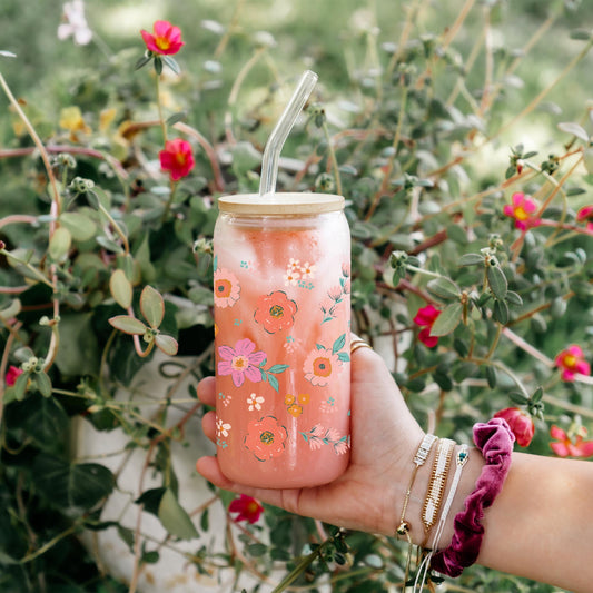 24oz Cold Brew Glass-Kalia Floral Oh Happy Days