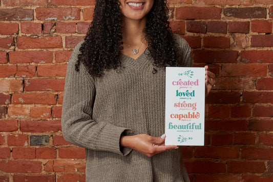 5x10 Wood Block-Kalia Floral Created Loved Strong