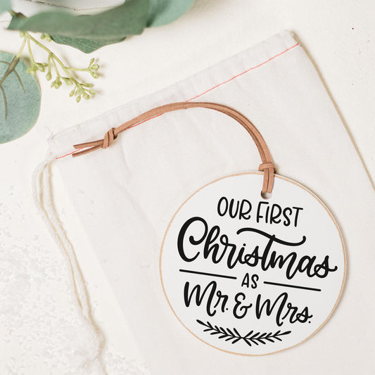 4" Round Ornament-Our First Christmas Mr & Mrs
