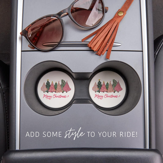 Car Coaster 2-Pack Kalia Lane-Pink Trees Merry Christmas