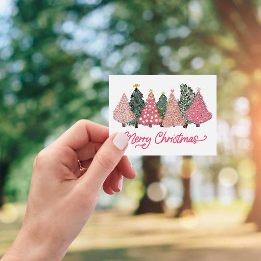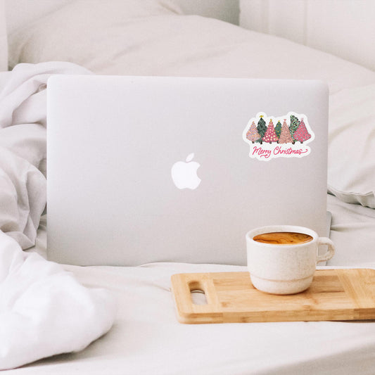 Vinyl Sticker-Pink Trees Merry Christmas