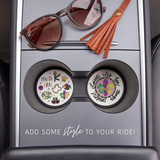 Car Coaster 2-Pack Kalia Lane-Mardi Gras Icons & Laissez Les Bon Temps Rouler