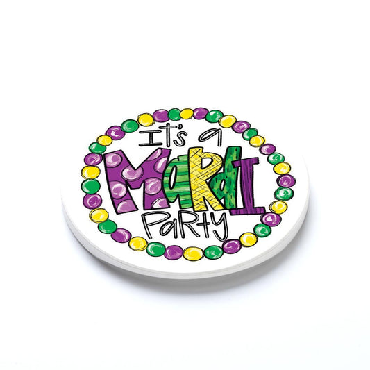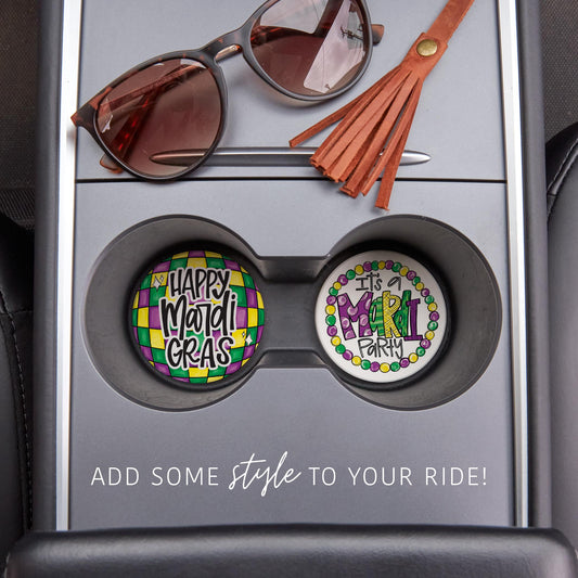 Car Coaster 2-Pack Kalia Lane-Mardi Gras Disco Ball & Mardi Party