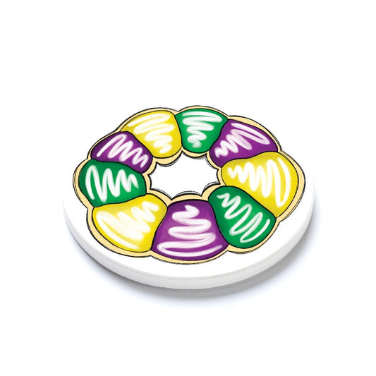 Ceramic Round Coaster-Mardi Gras King Cake