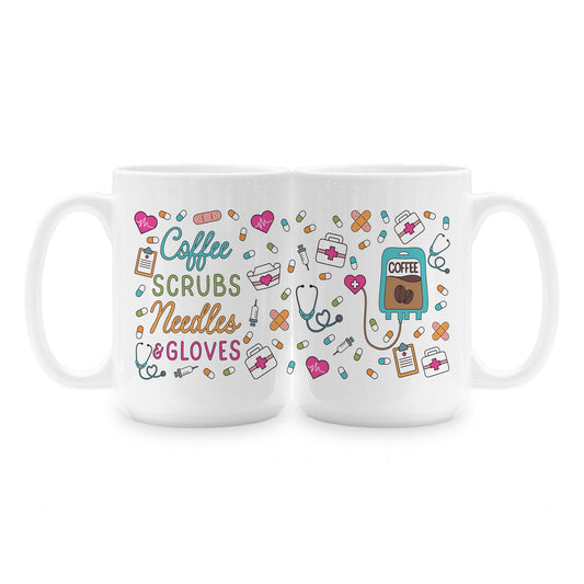 15oz Coffee Mug White-Coffee Scrubs Needles Gloves