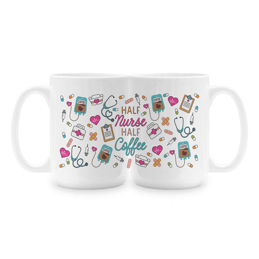 15oz Coffee Mug White-Half Nurse Half Coffee
