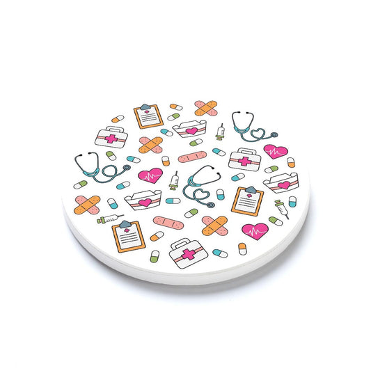 Car Coaster 2-Pack Kalia Lane-Nurse Life & Floral Stethoscope