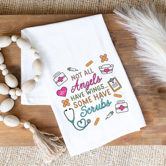 Cotton Tea Towel White-Some Angels Have Scrubs