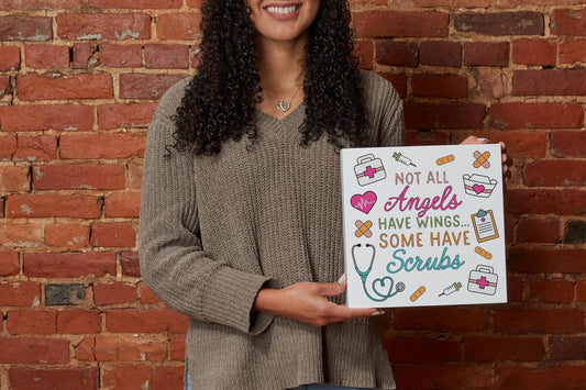 12x12 Wood Plaque-Some Angels Have Scrubs