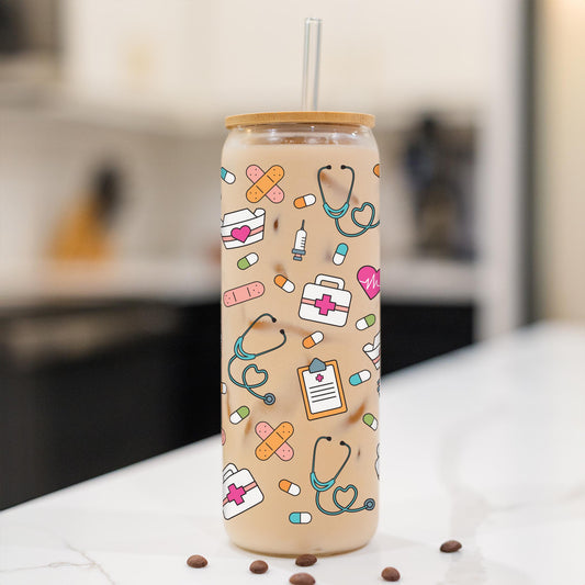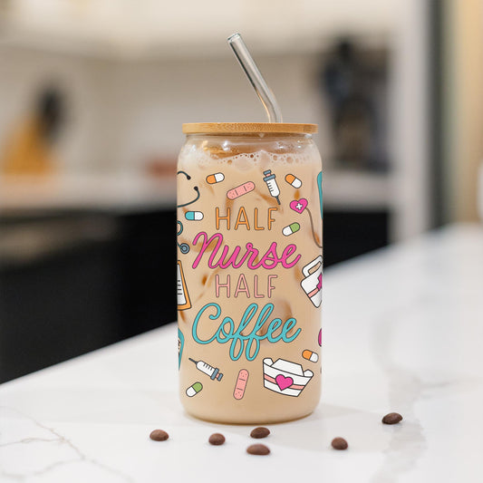 16oz Cold Brew Glass-Half Nurse Half Coffee