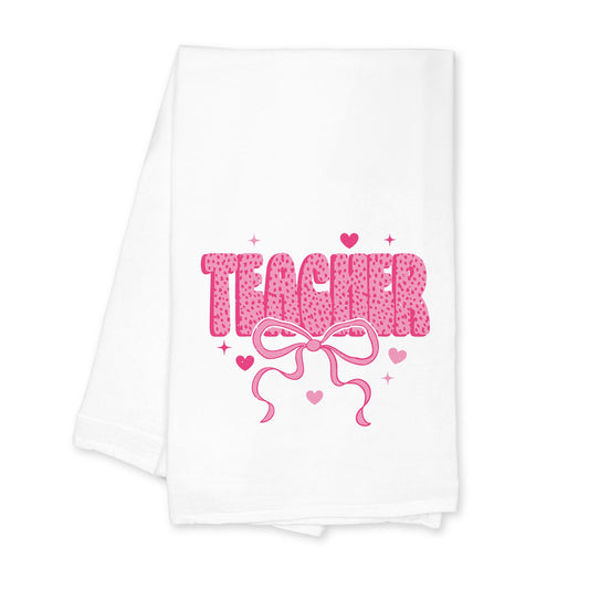 Cotton Tea Towel White-Classroom Coquette Teacher Hearts & Bow