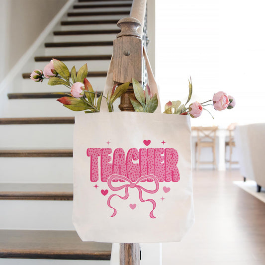 Tote Bag Natural Canvas-Classroom Coquette Teacher Hearts & Bow