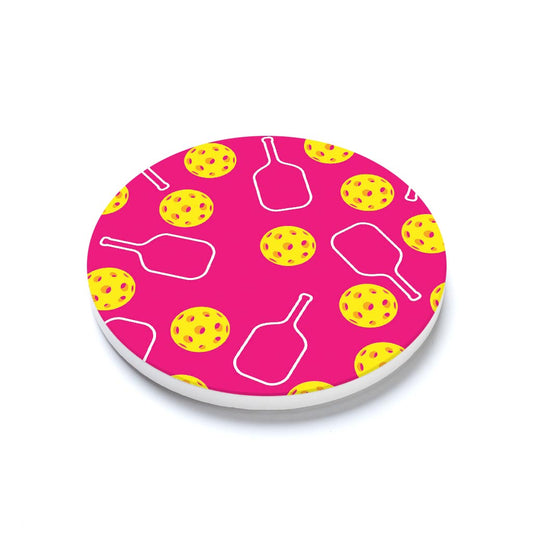 Ceramic Round Coaster-Pink Pickleball Pattern