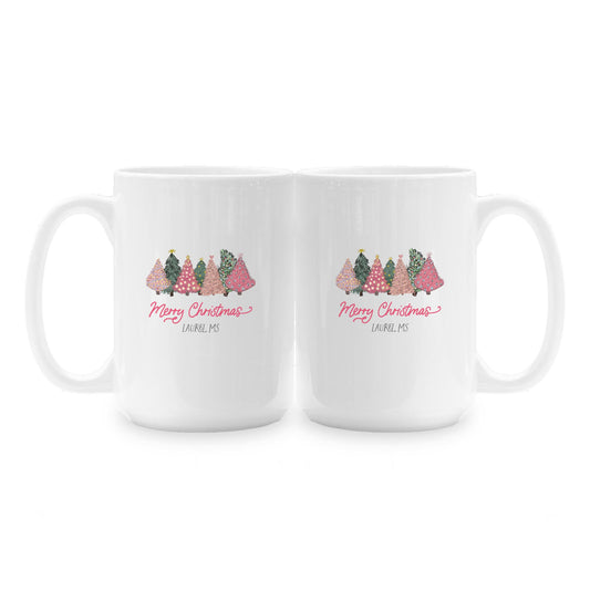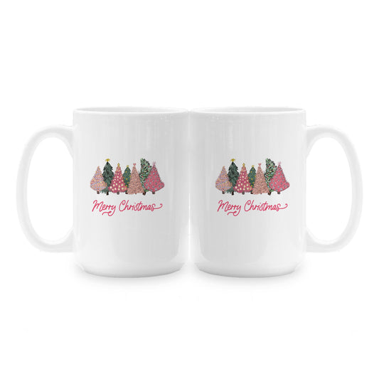 15oz Coffee Mug White-Pink Trees Merry Christmas