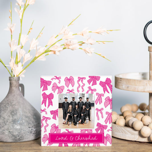 Simply Square Frame-Pink Bows Loved & Cherished