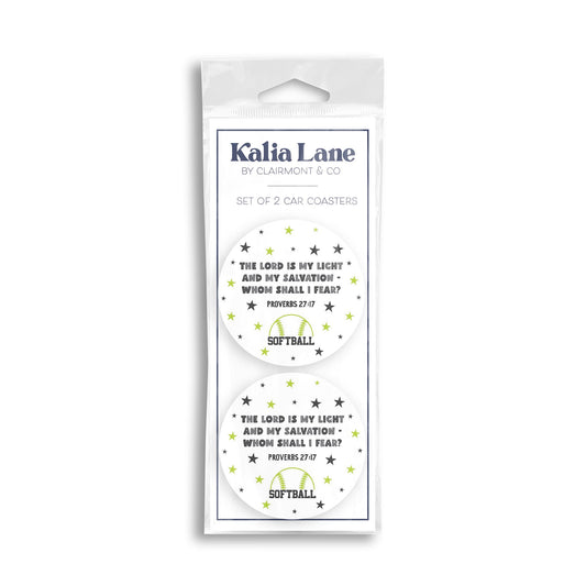 Car Coaster 2-Pack Kalia Lane-The Lord Is My Light Softball Green & Black