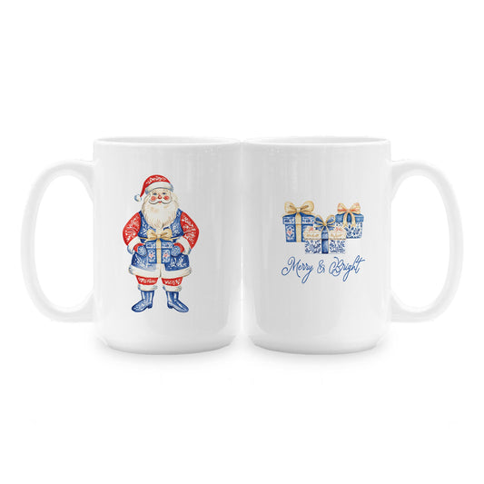 15oz Coffee Mug White-Blue Noel - A Grand Millennial Christmas