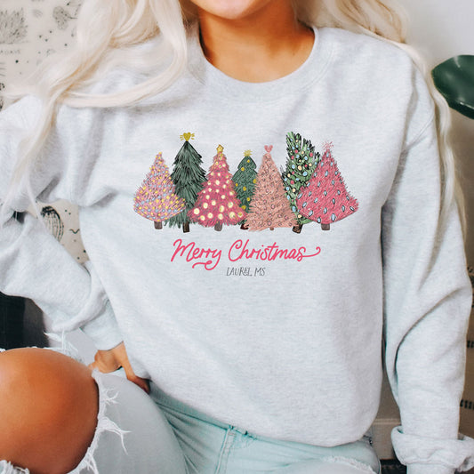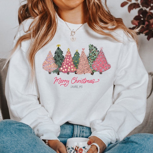 Love+Local Graphic Sweatshirt | Pink Christmas Trees