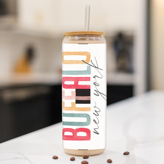 24oz Cold Brew Glass-Watercolor City Buffalo NY