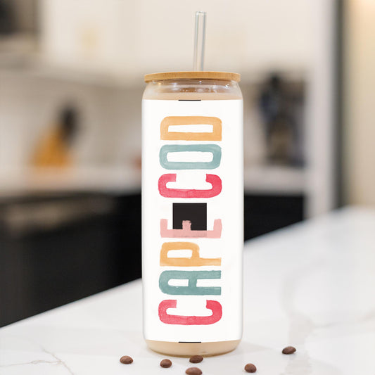 24oz Cold Brew Glass-Watercolor City Cape Cod MA