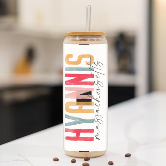 24oz Cold Brew Glass-Watercolor City Hyannis MA