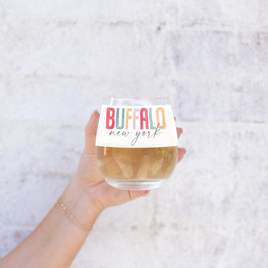 15oz Stemless Wine Glass-Watercolor City Buffalo NY