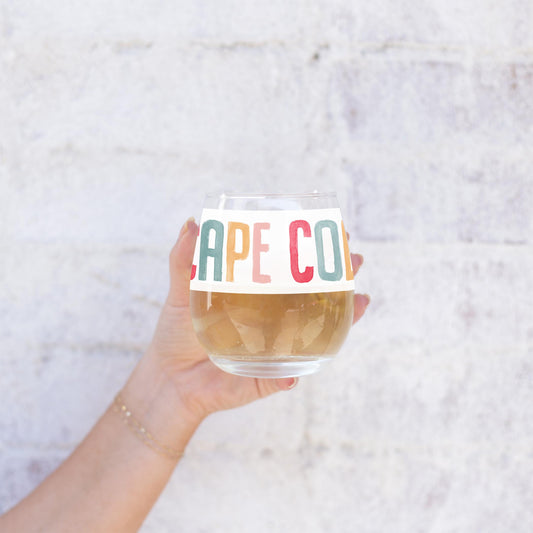 15oz Stemless Wine Glass-Watercolor City Cape Cod MA
