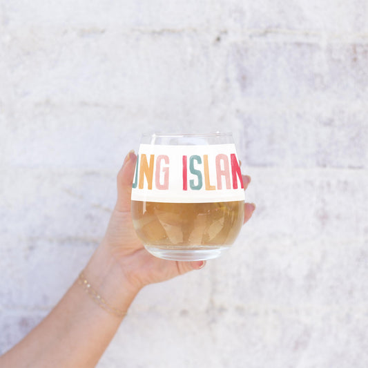 15oz Stemless Wine Glass-Watercolor City Long Island NY
