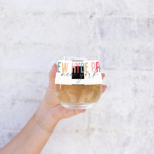 15oz Stemless Wine Glass-Watercolor City New Hyde Park NY