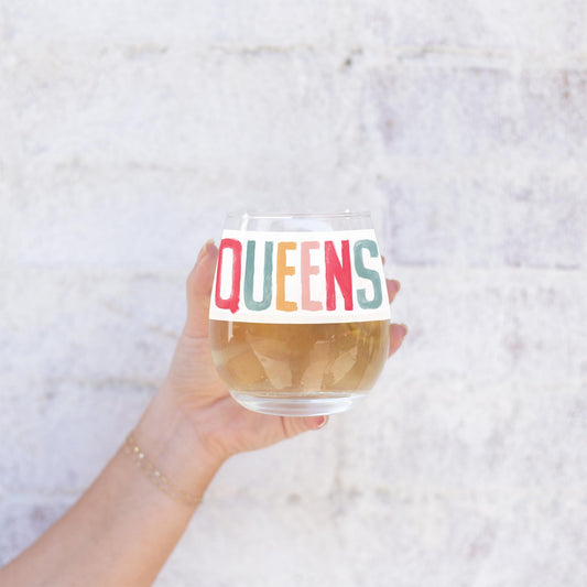 15oz Stemless Wine Glass-Watercolor City Queens NY