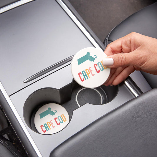 Car Coaster 2-Pack Love Local-Watercolor City Cape Cod MA