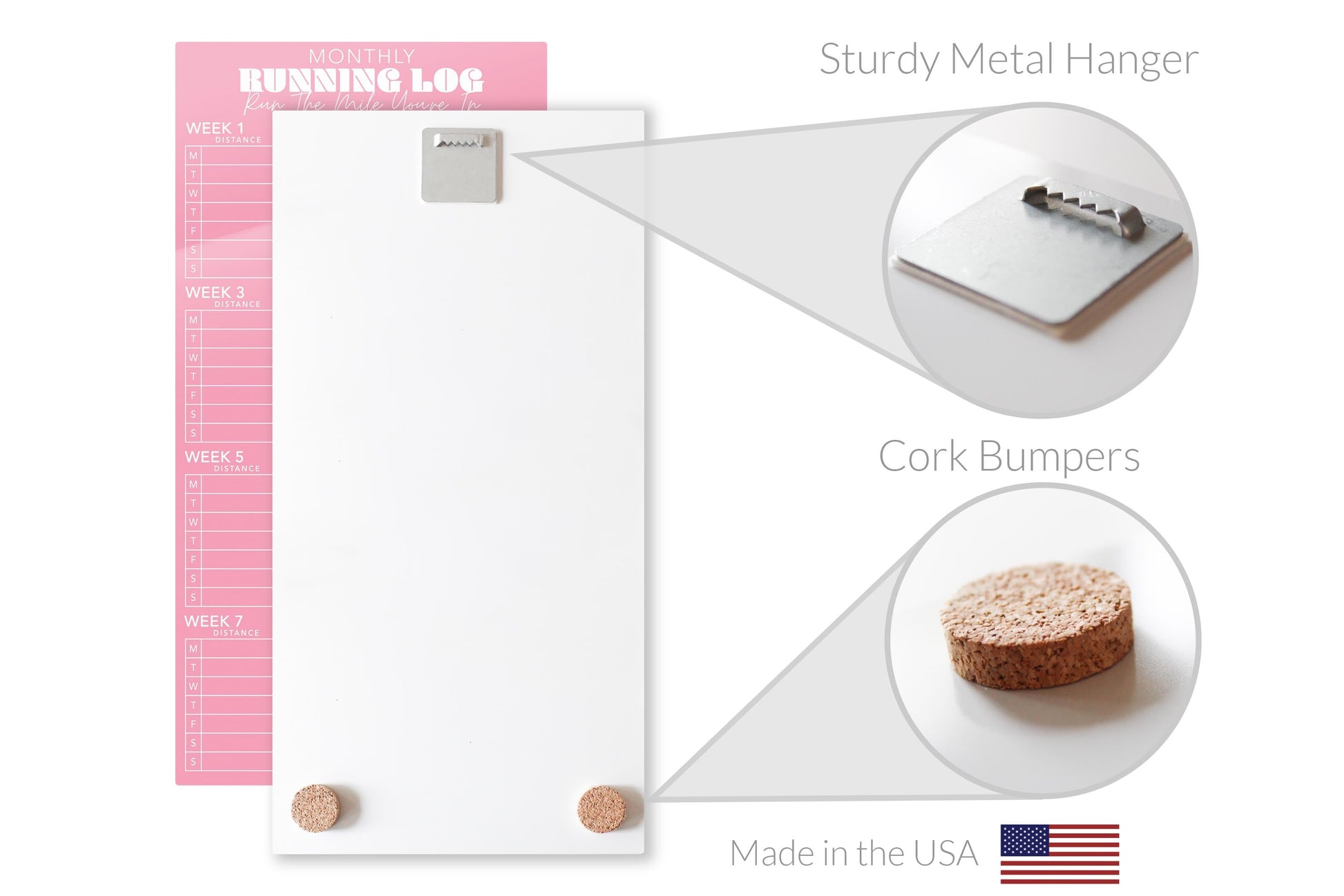 Change your life with our LIFEtrack habit trackers. Beautiful and vibrant glass, dry erase. Use with any dry erase marker. Easy to mount on sawtooth hangers. Cork bumpers on the back protect the wall surface, provide stability while using the product, and give a modern levitating effect. Eco-friendly, water-based ink provides beautiful color and rich dimension. The high-quality tempered glass is sleek, modern, and durable. Protective, efficient packaging includes 100% recyclable cardboard. Proudly printed, packaged, and shipped from the USA.