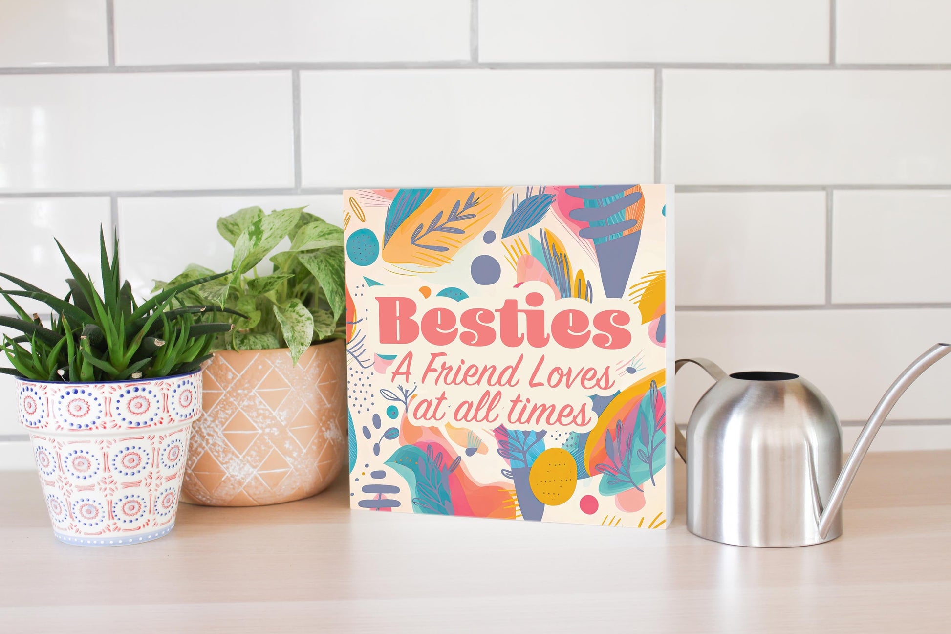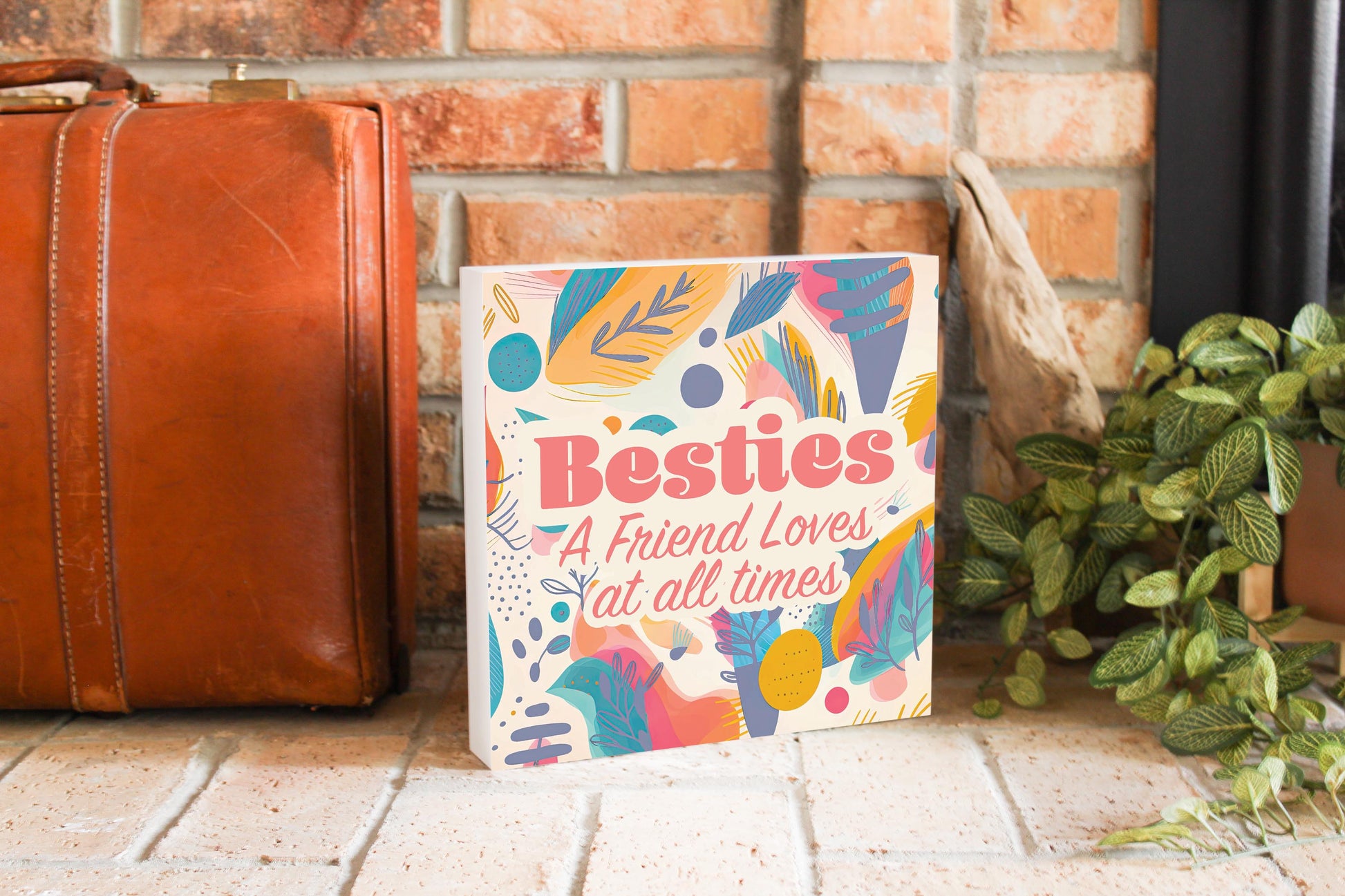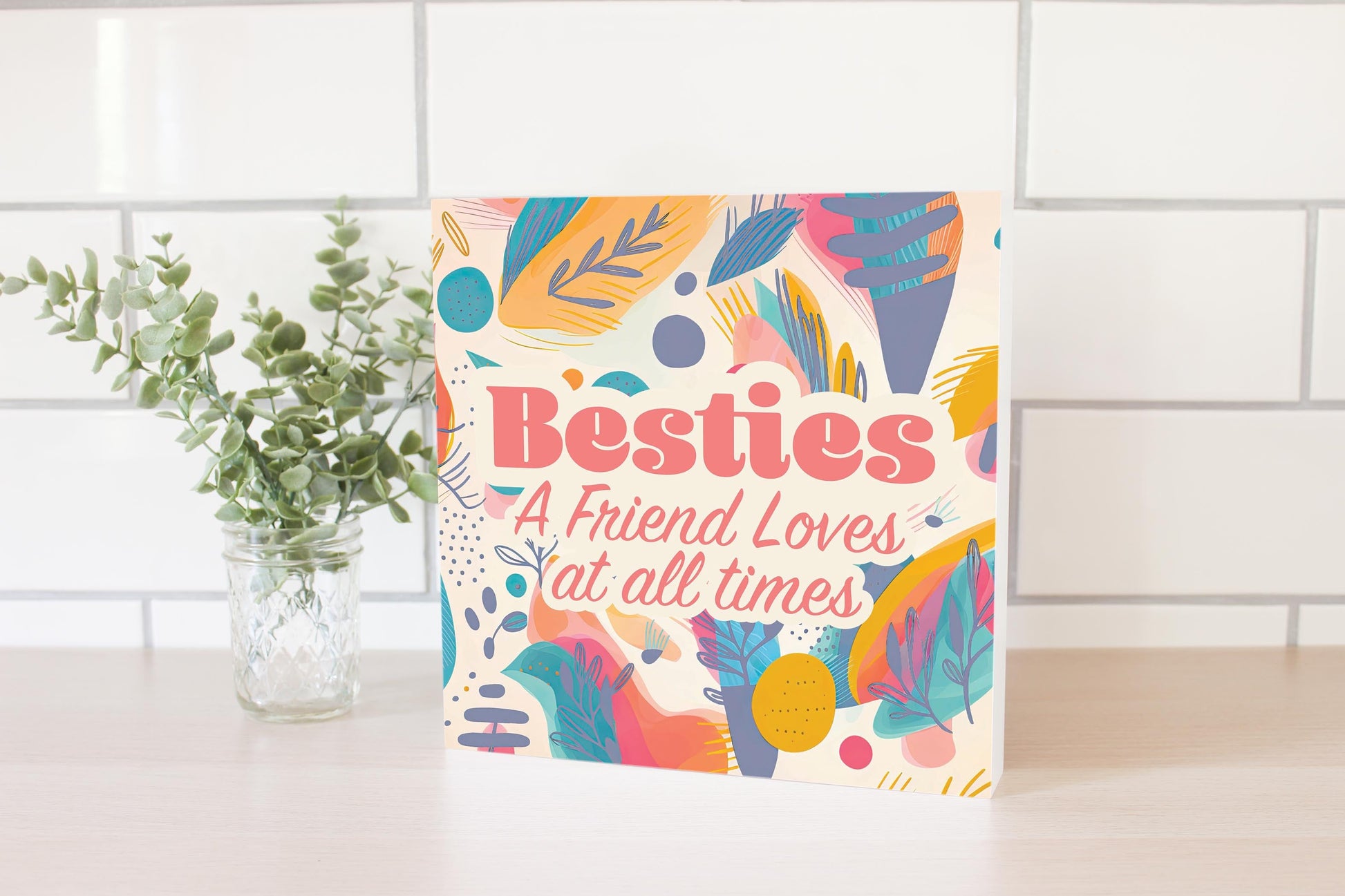 These 10 inch by 10 inch wood block signs fit any setting! They require no hardware, and the hollow back design feely stands on its own or can be hung on the wall. Perfect for desks, mantels, counters, or shelves. The beautiful texture of the wood and vibrancy of ink are a great pairing. Our eco-friendly, water-based ink provides beautiful color and dimension, and all our wood blocks are made from upcycled compressed wood fiber. Printed and packaged in the USA.