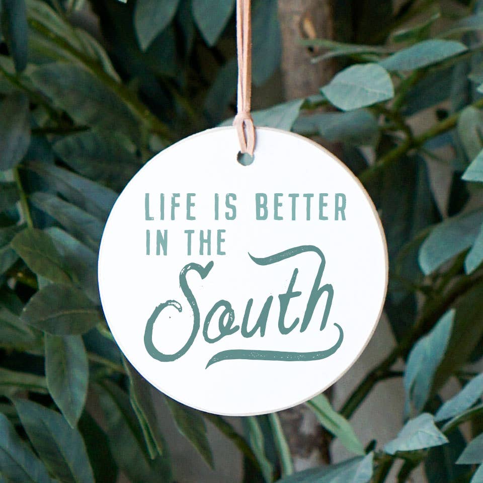 Our 4 Inch Round Ornaments are handmade in our warehouse in Laurel, Mississippi. These ornaments are made of real wood and come in a variety of designs. You will love these on any tree or use to add a little charm to your space all year long.