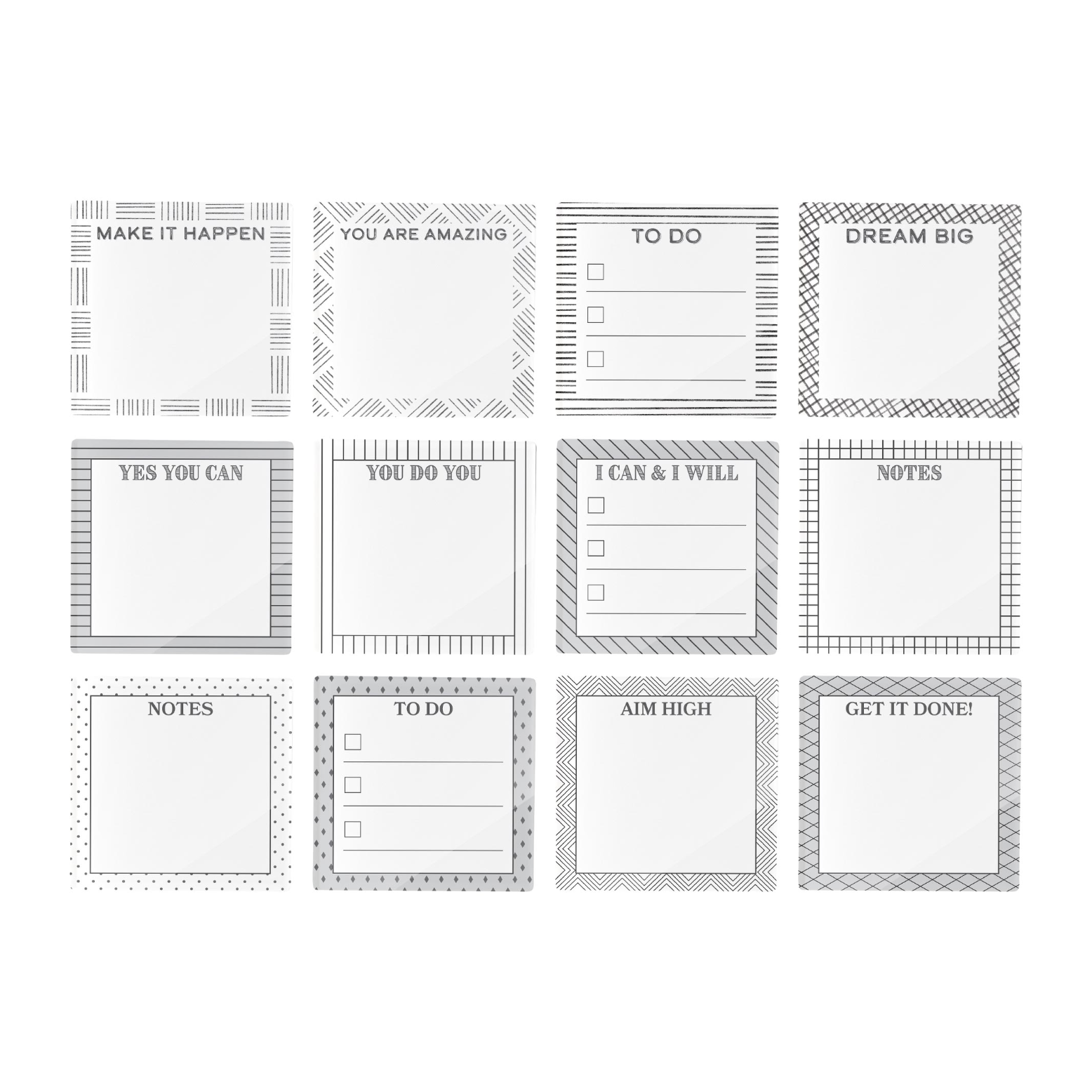 Black & White Notes Clear Reminder Pre-Pack | 48 Pieces