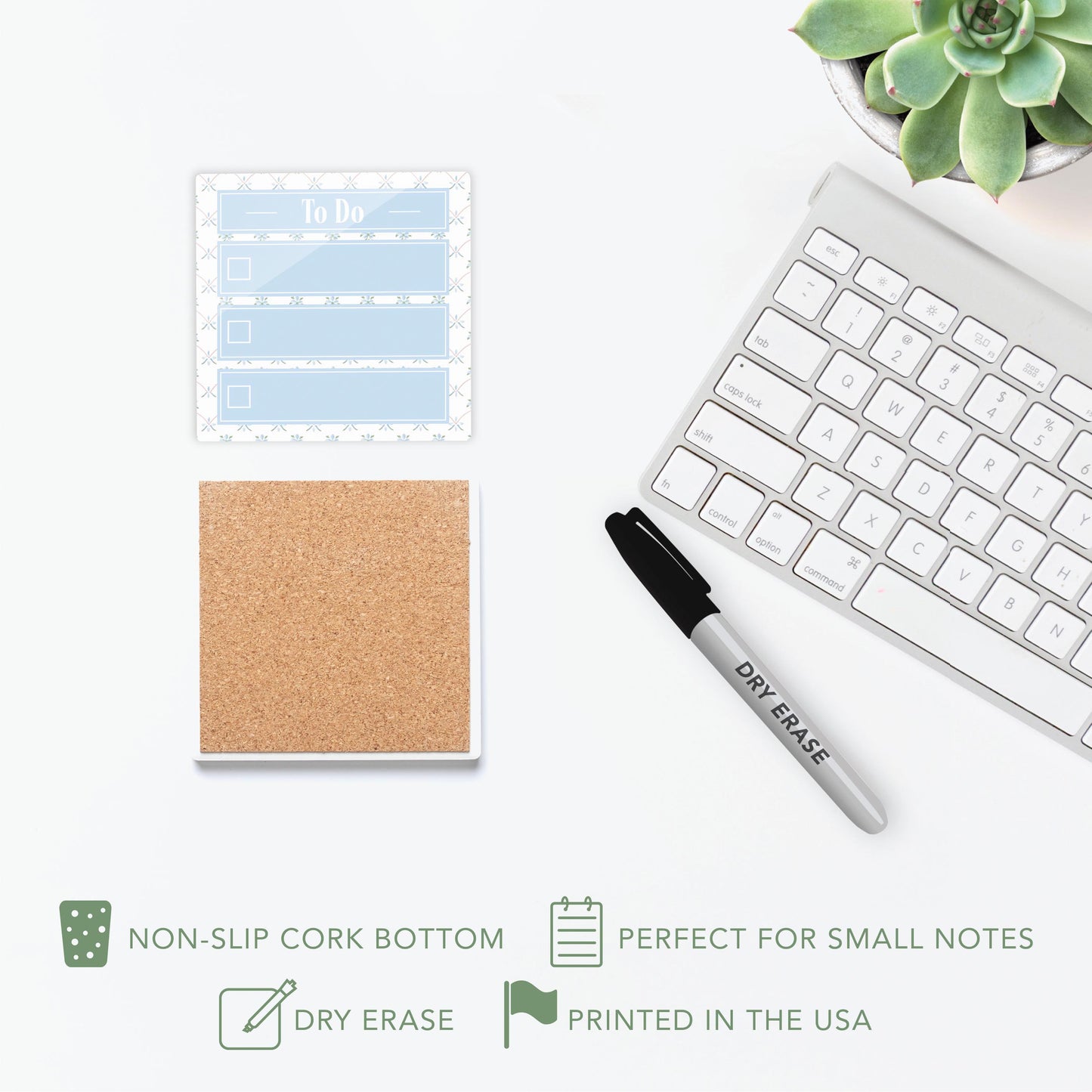 • Cork backing: eco-friendly, stays put and keeps surfaces safe.