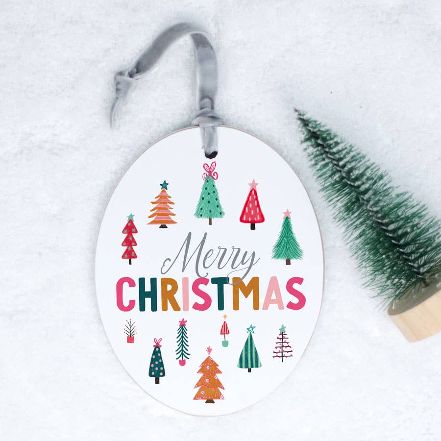 - 5-inch Oval Ornament- Colorful Trees Merry Christmas