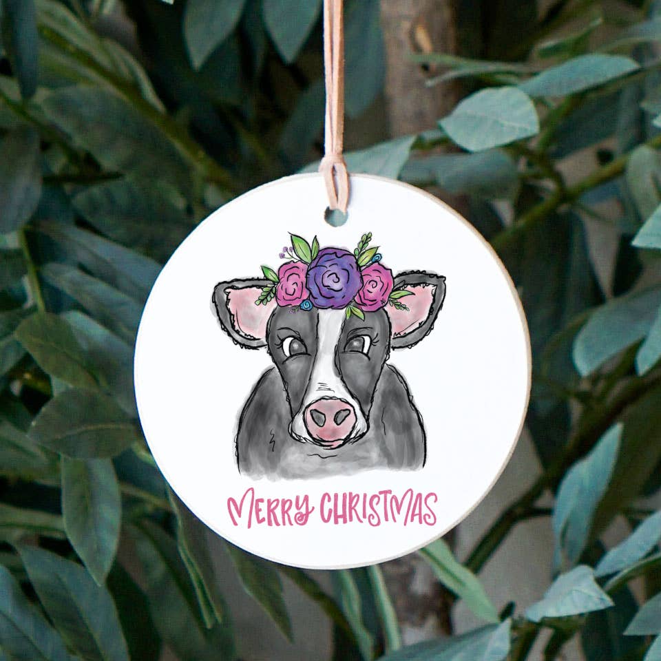 Christmas Ornament, Cow Decor, Merry Christmas Cow Wood Ornament - RO1957