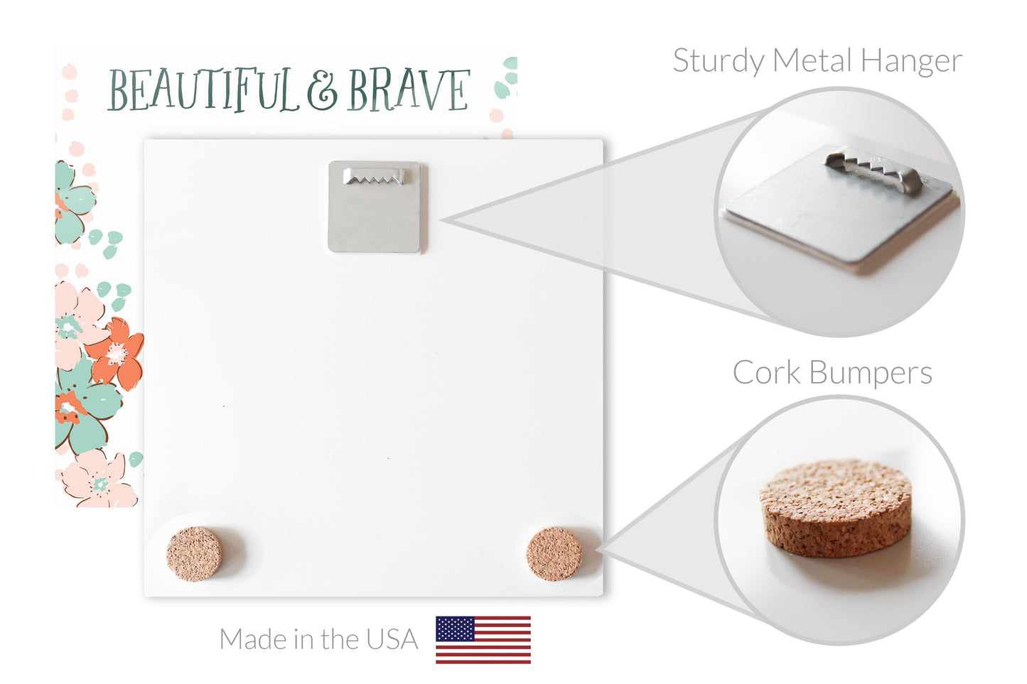 Beautiful and vibrant glass, dry erase. Use with any dry erase marker. Easy to mount on sawtooth hangers. Cork bumpers on the back protect the wall surface, provide stability while using the product, and give a modern levitating effect. Eco-friendly, water-based ink provides beautiful color and rich dimension. The high-quality tempered glass is sleek, modern, and durable. Protective, efficient packaging includes 100% recyclable cardboard.ย Proudly printed, packaged, and shipped from the USA.ย
