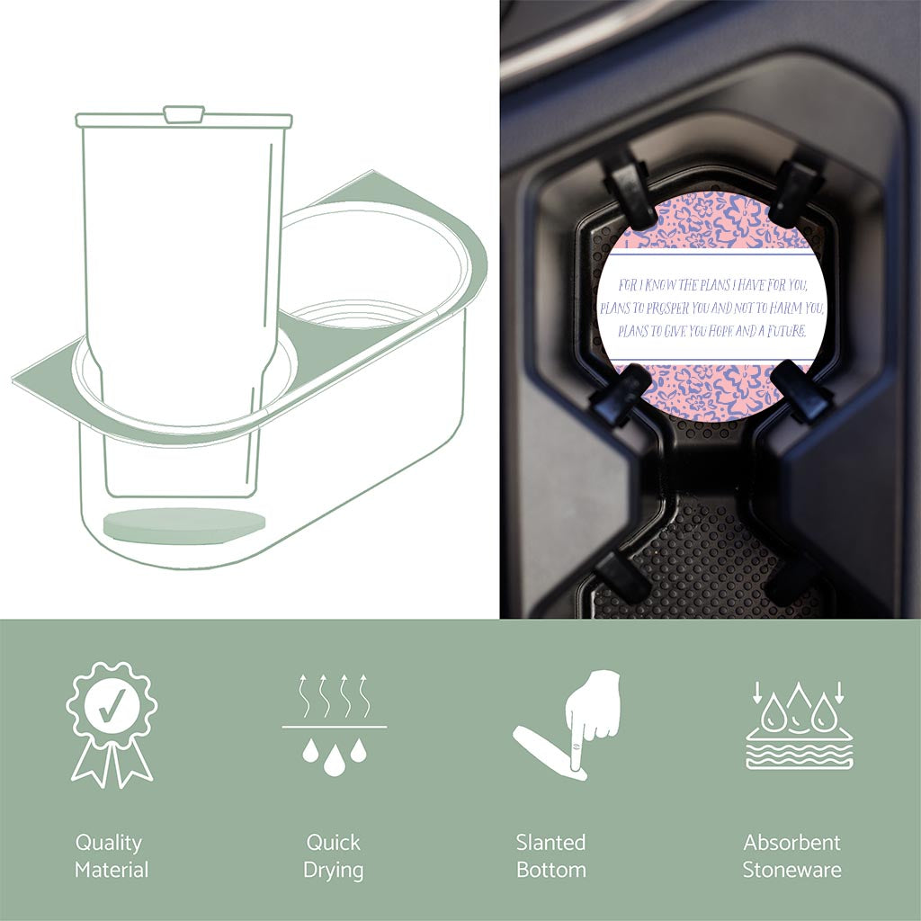 Car coasters are that little accessory that you didn’t know you needed but now consider an essential. Your cupholders are protected and kept clean by absorbing drips from your morning coffee to sticky juice boxes. The strategic divot edge allows you to easily pop it out and wipe clean. No more grime stuck in the cupholder abyss. While car coasters are wonderfully utilitarian, they also inject a little personality and design into the space you spend so much time in. Order an assortment to mix and match to the season or newest trends.
