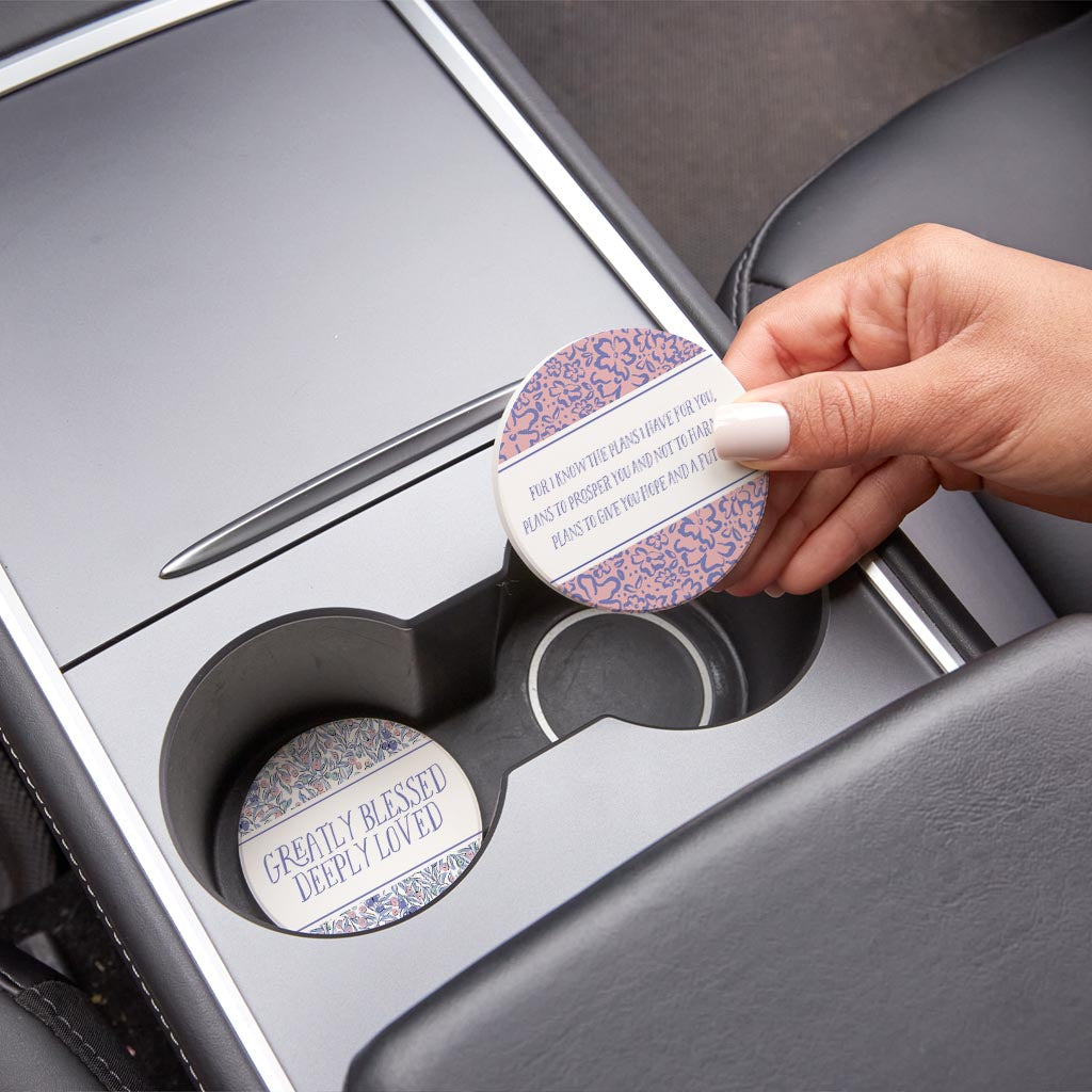 Merchandised in a versatile polybag 2-set, car coasters are that little accessory that you didn’t know you needed but now consider an essential. Your cupholders are protected and kept clean by absorbing drips from your morning coffee to sticky juice boxes. The strategic divot edge allows you to easily pop it out and wipe clean. No more grime stuck in the cupholder abyss. While car coasters are wonderfully utilitarian, they also inject a little personality and design into the space you spend so much time in. Order an assortment to mix and match to the season or newest trends.