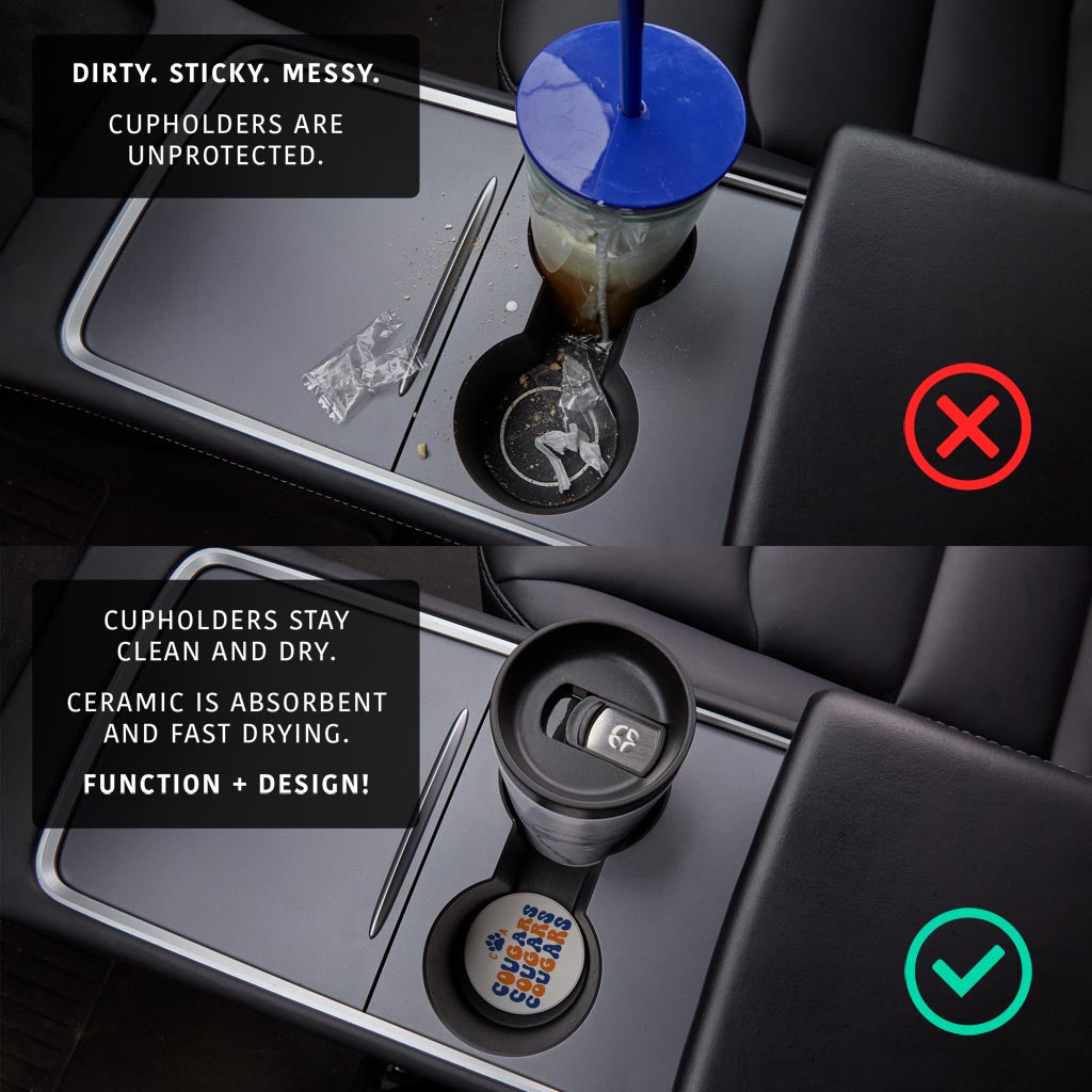 Merchandised in a versatile polybag 2-set, car coasters are that little accessory that you didn’t know you needed but now consider an essential. Your cupholders are protected and kept clean by absorbing drips from your morning coffee to sticky juice boxes. The strategic divot edge allows you to easily pop it out and wipe clean. No more grime stuck in the cupholder abyss. While car coasters are wonderfully utilitarian, they also inject a little personality and design into the space you spend so much time in. Order an assortment to mix and match to the season or newest trends.