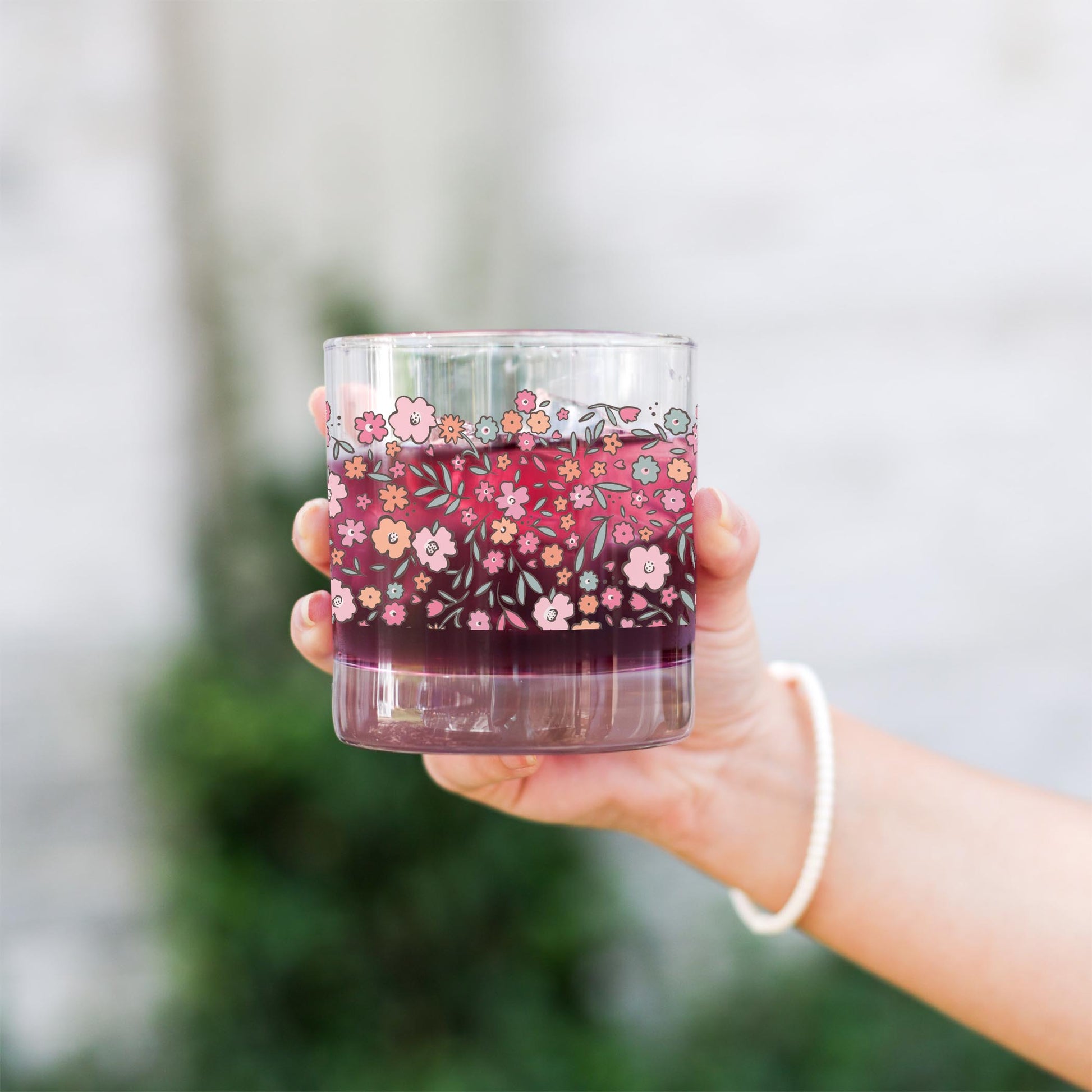 11oz Bourbon Glass-Floral Pattern