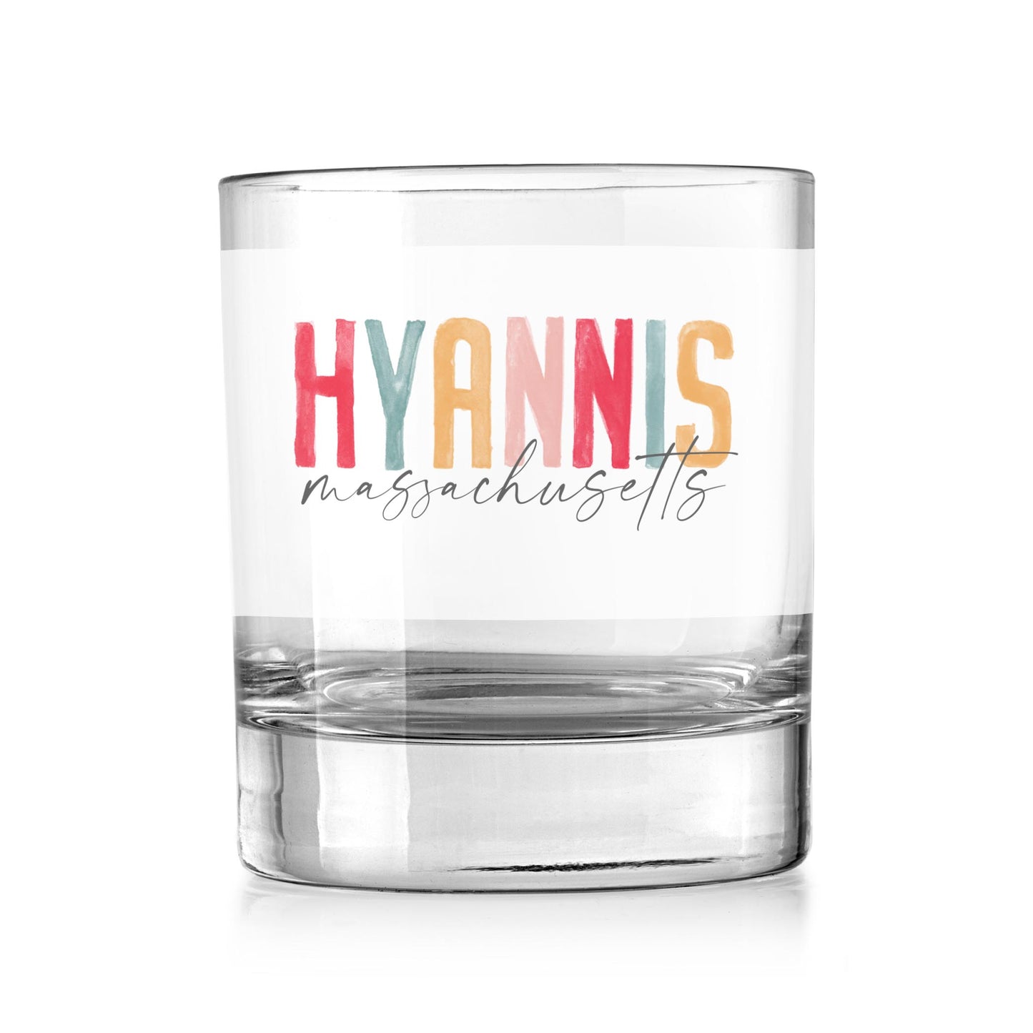 11oz Bourbon Glass-Watercolor City Hyannis MA