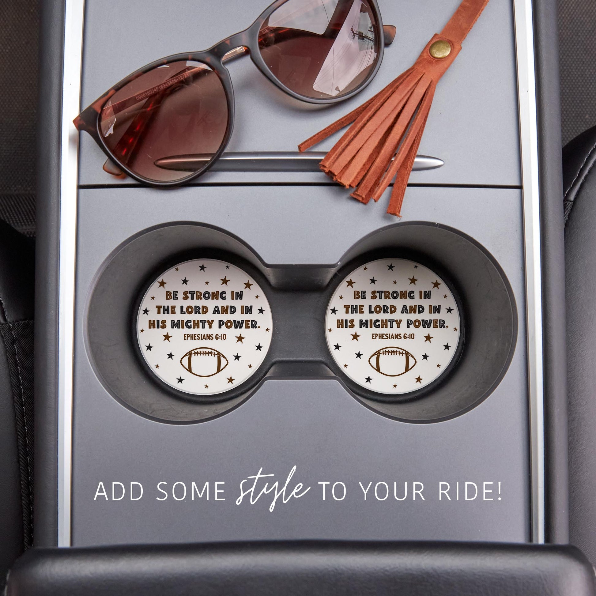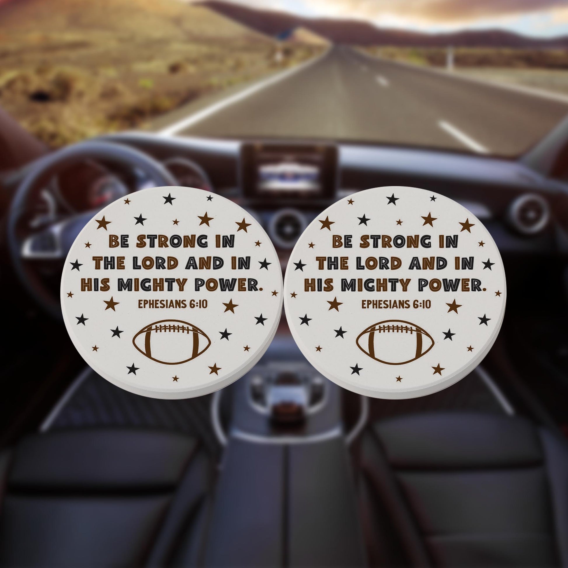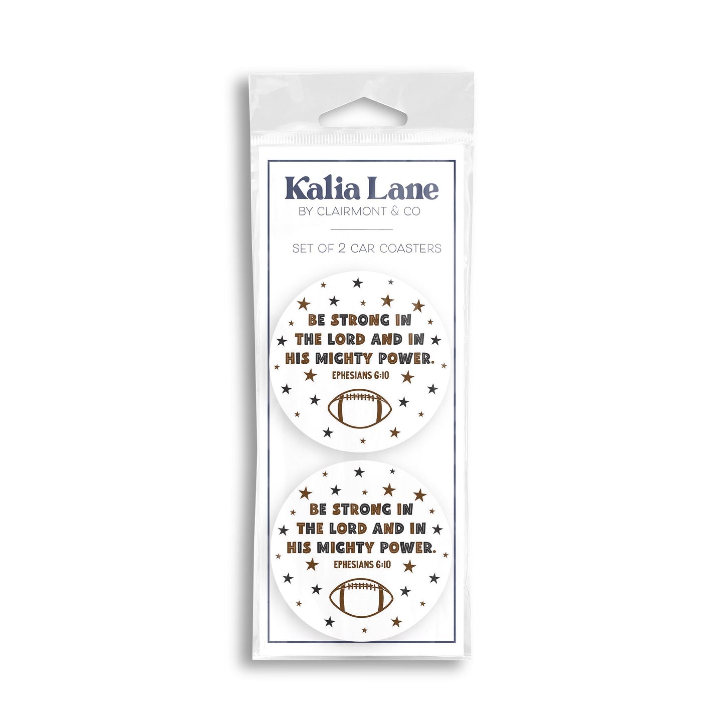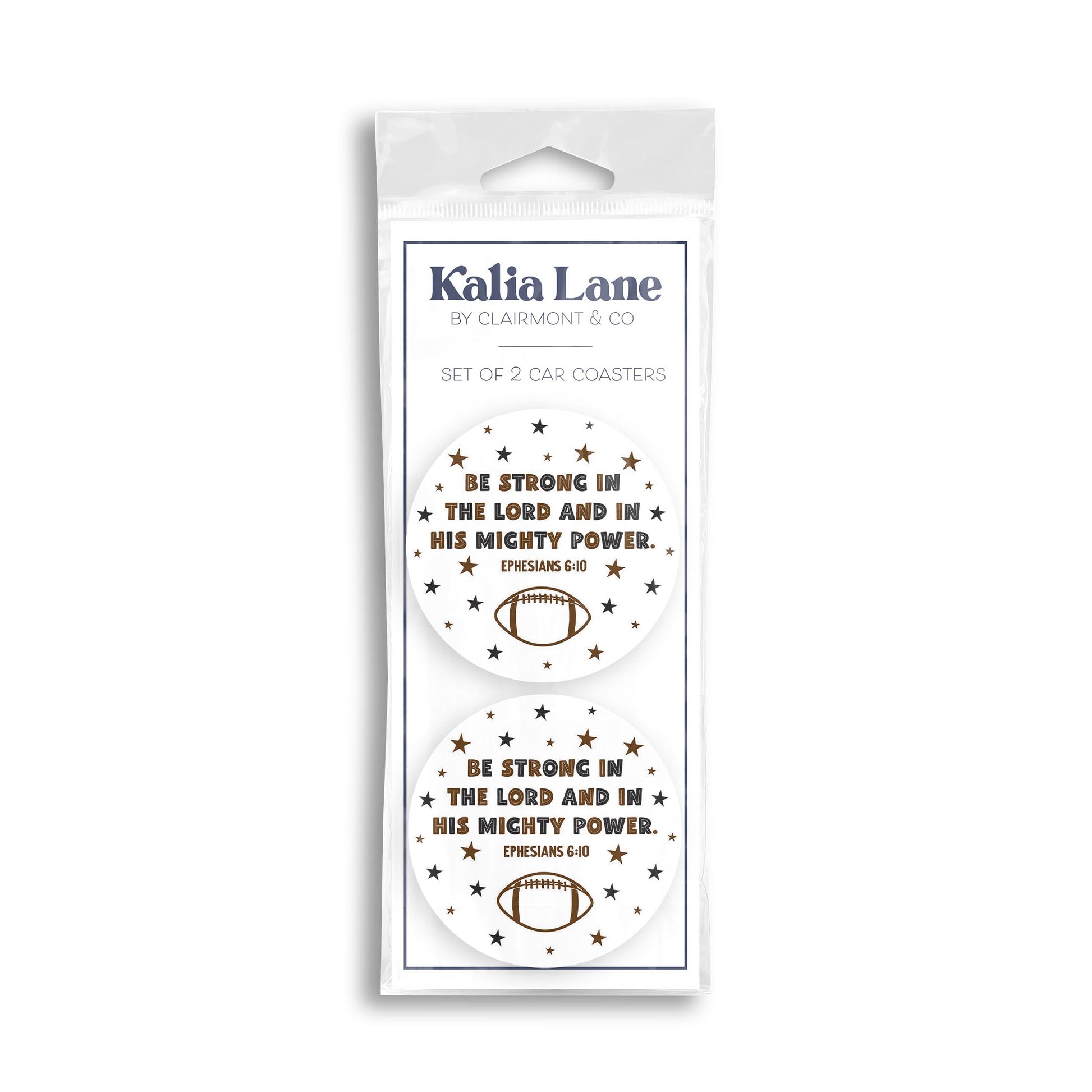 Car Coaster 2-Pack Kalia Lane-Be Strong Football Brown & Black
