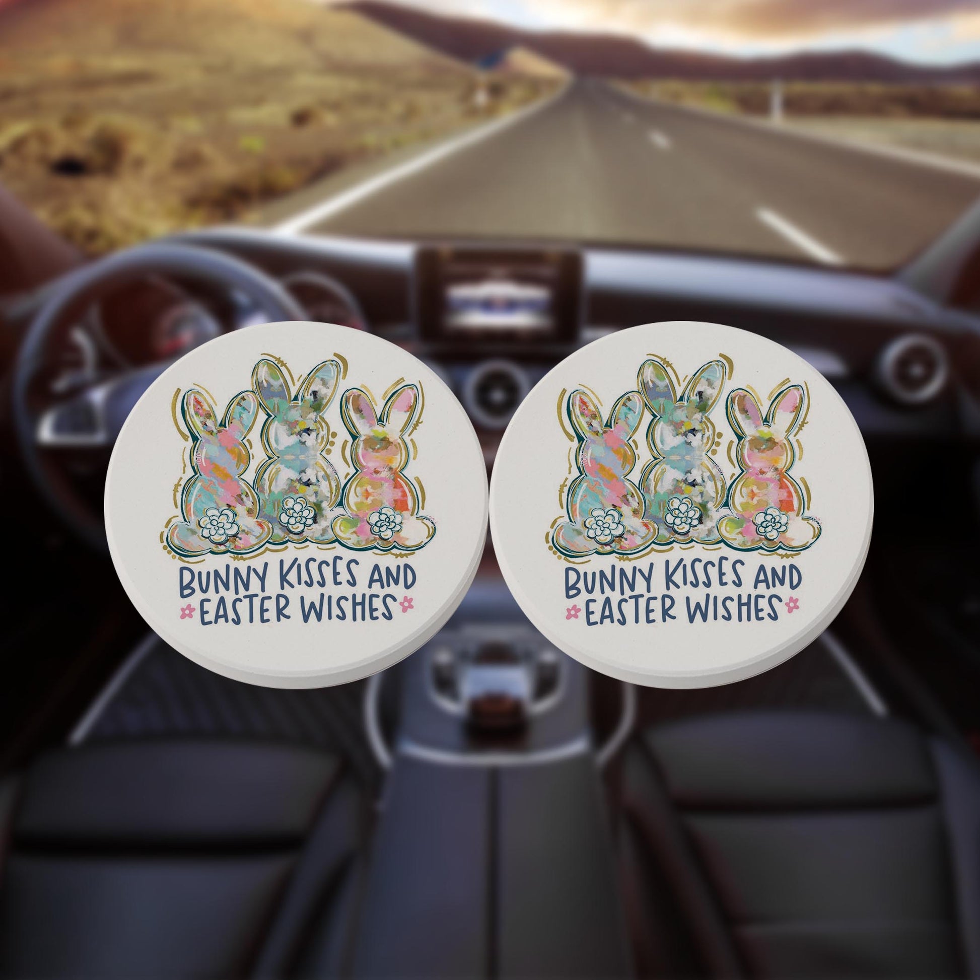 Car Coaster 2-Pack Kalia Lane-Bunny Kisses & Easter Wishes