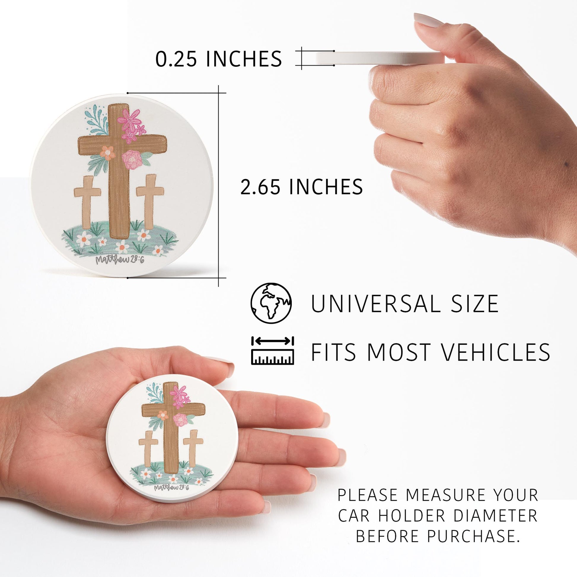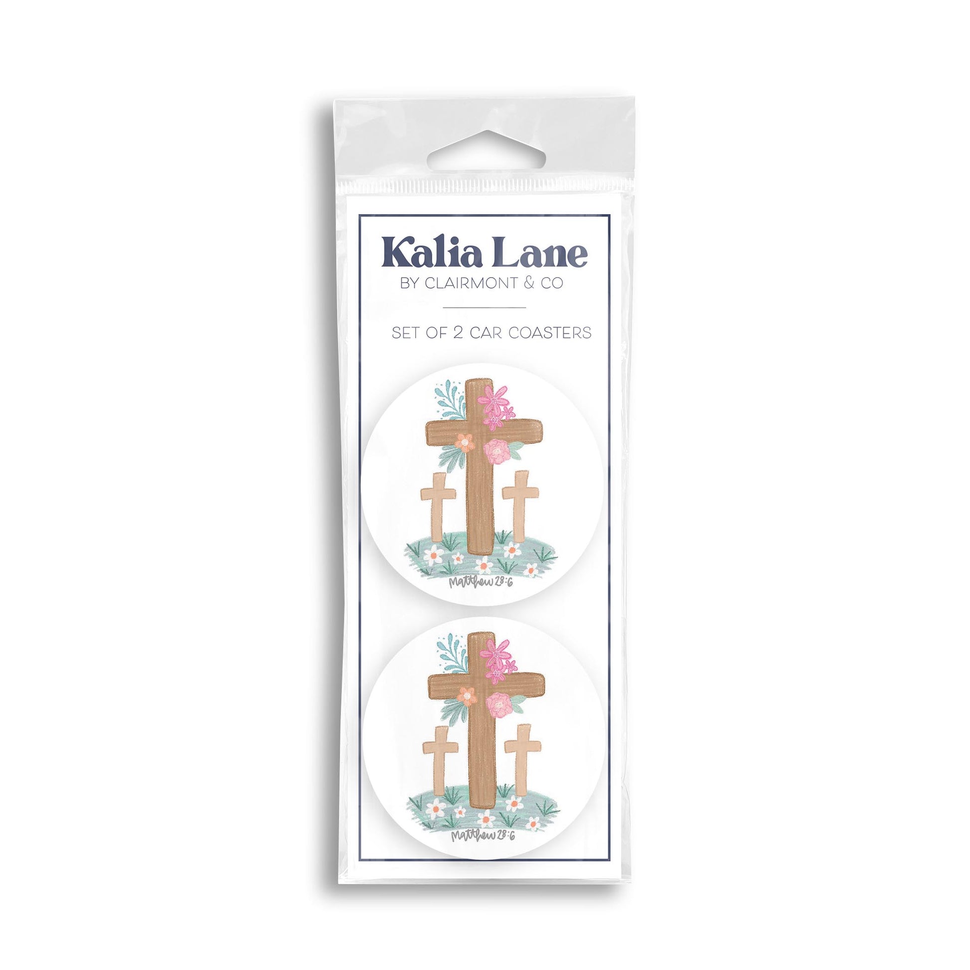 Car Coaster 2-Pack Kalia Lane-Floral Cross Matthew 28:6