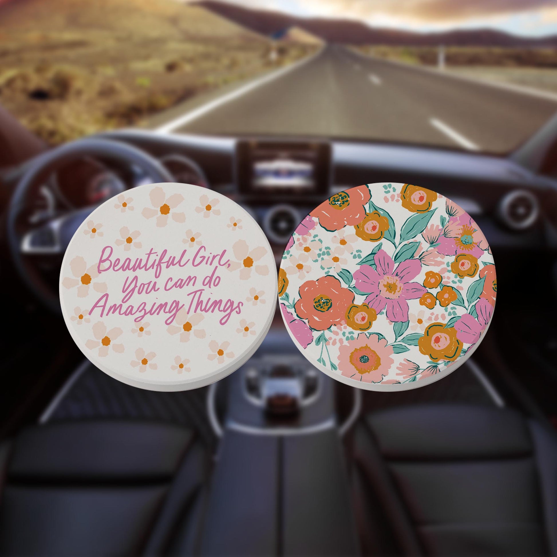 Car Coaster 2-Pack Kalia Lane-Kalia Floral Beautiful Girl & Pattern