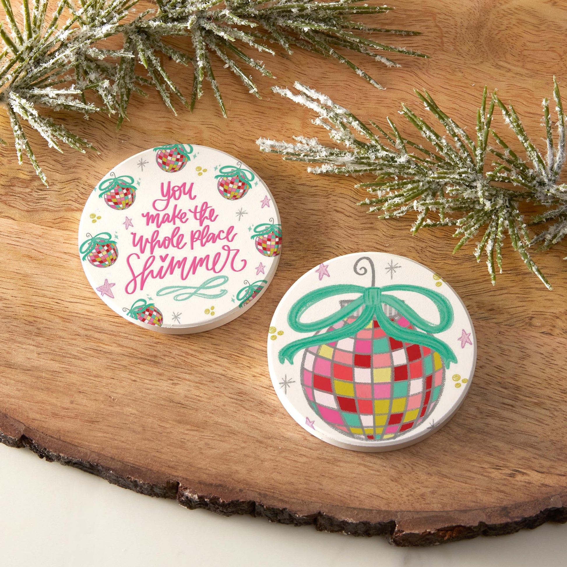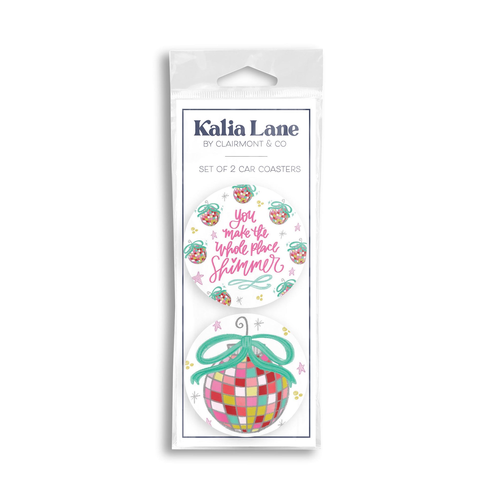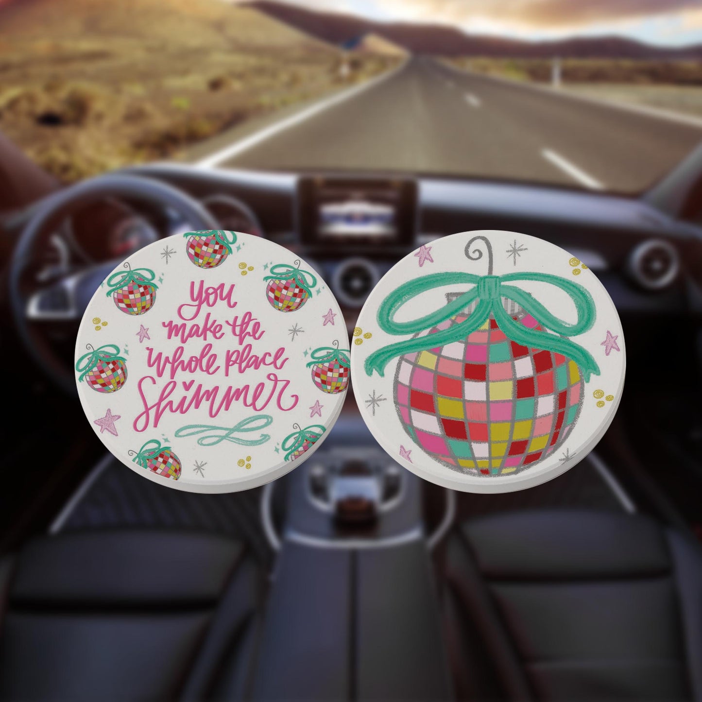 Car Coaster 2-Pack Kalia Lane-Whole Place Shimmer & Disco Ball