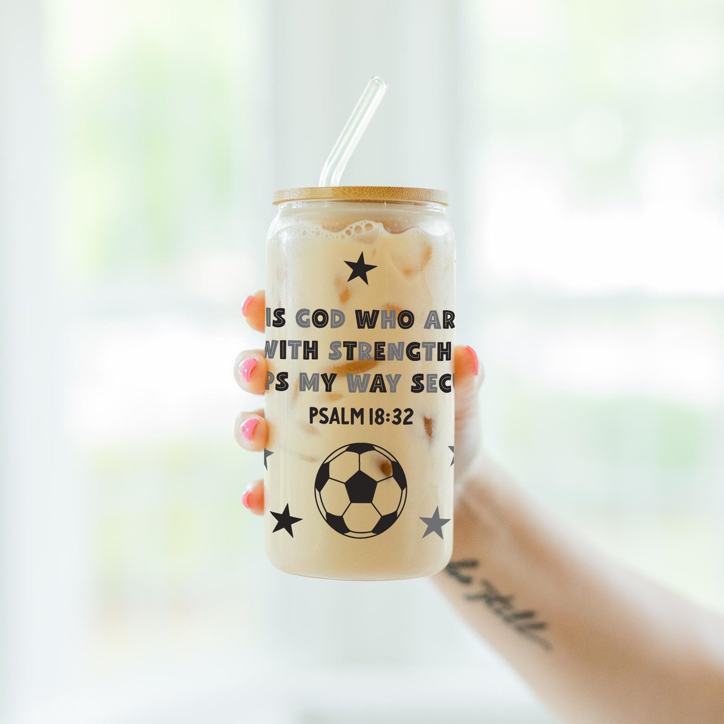 16oz Cold Brew Glass-It Is God Soccer Grey & Black